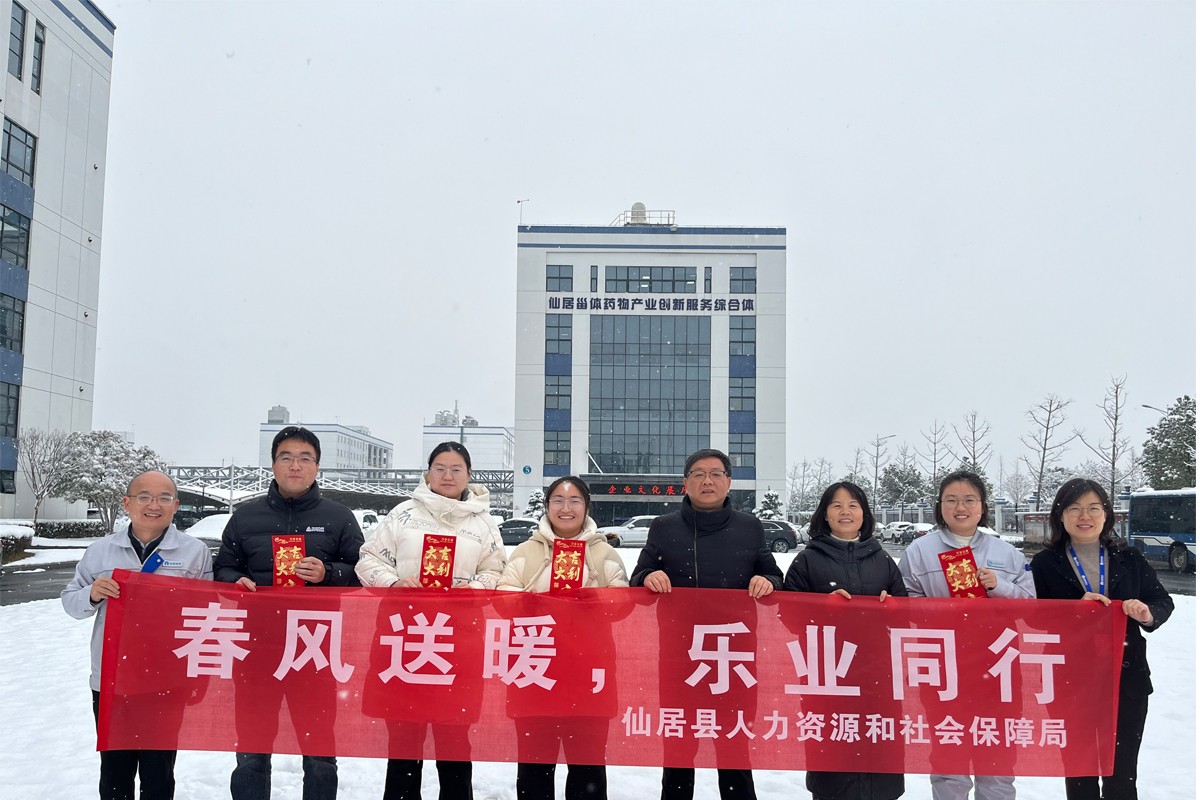 仙琚制藥副總經(jīng)理應(yīng)明華、API研究院院長戴靜攜科技人員向全體仙藥人拜年。